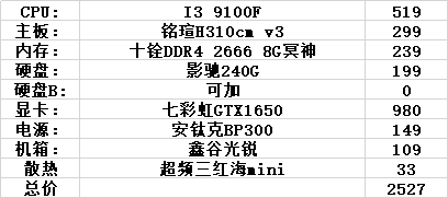 这款配置完全就是上面的那款换个CPU,但是核显性能提升非常巨大,搭配双通道内存LOL之类的网游特效全开问题不大,另外一些单价中低特效也没问题。但是同样的一定要搭配双通道内存哦。