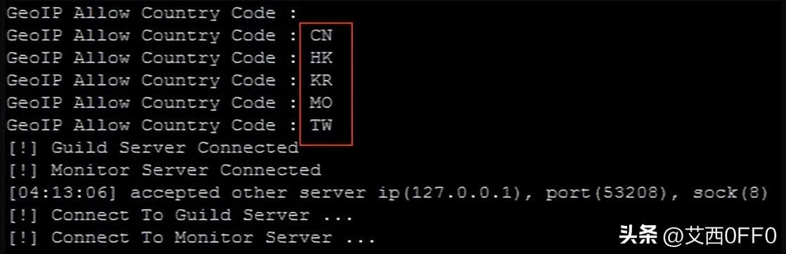 grep -rHi 'GeoIP Allow Country Code' /dnf/log如果没有返回信息稍等片刻再输入一次试试,直到有反馈信息为止。看到这里有返回了地区信息,就代表服务端已经搭建并启动成功了。