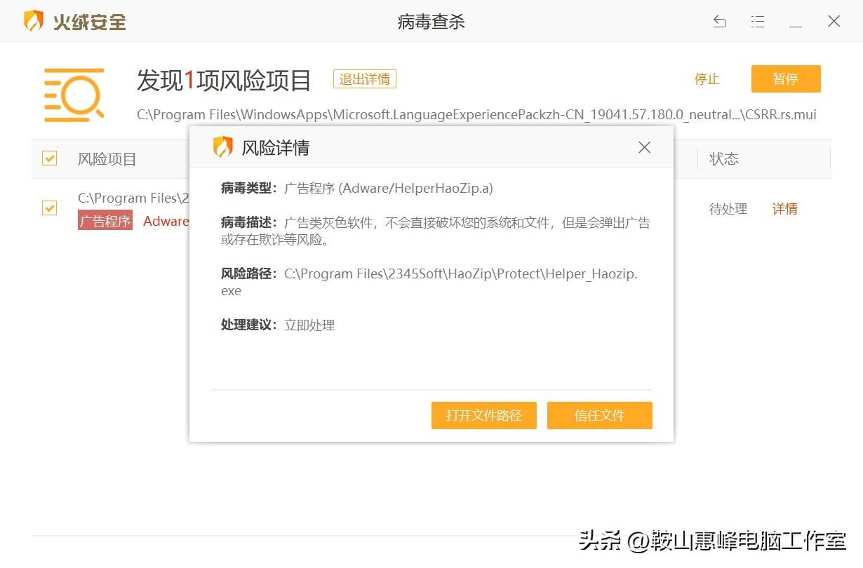 如果我们认为是没有风险的内容,可以使用添加信任,如果有风险,可以选择立即处理。