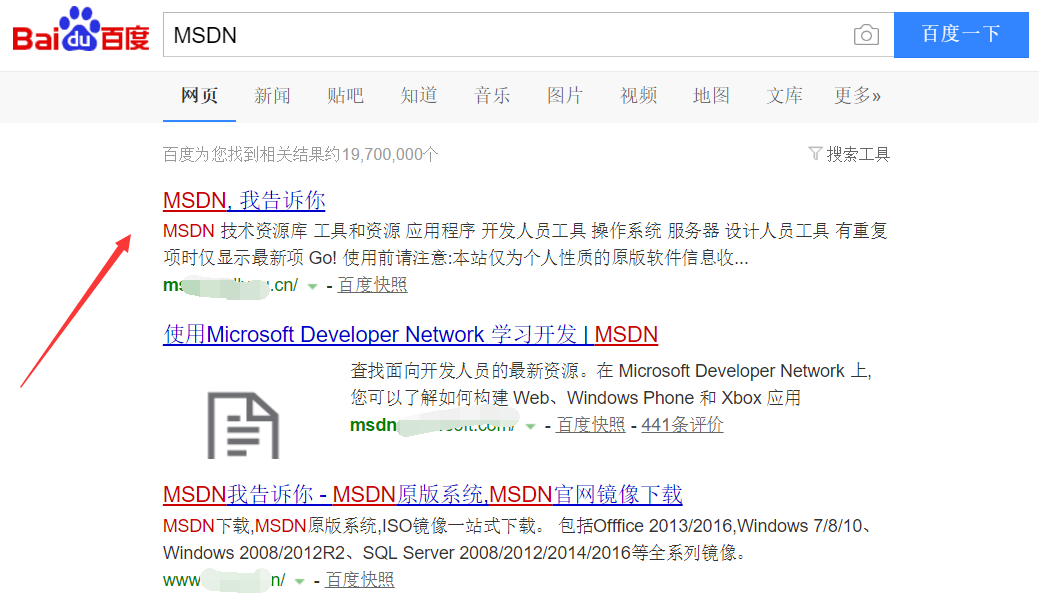 打开百度,在百度里面输入:“MSDN"点击搜索。