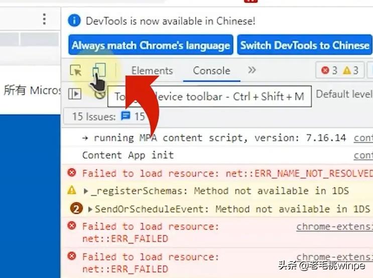 按下F12打开浏览器的开发者工具,点击设备模拟器按钮;