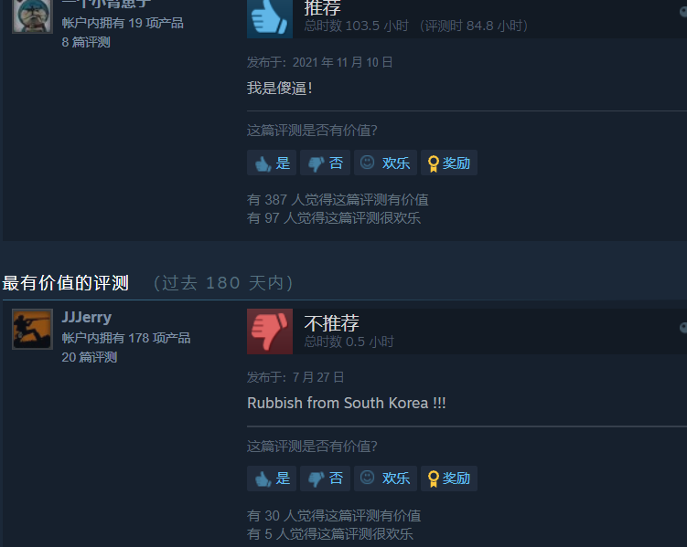 当然,这其中除了“没有老传奇的味道”等游戏本身的原因,还有“支持简体中文且Steam没锁国区,但是封大陆IP”,“外挂太多”,“账号数据离奇清档”,“服务器太差”等种种原因。而且,后面那些原因甚至有可能会大于前面的原因。毕竟从Steam评论上可以看到,绝大多数的评论并不是在说游戏本身。