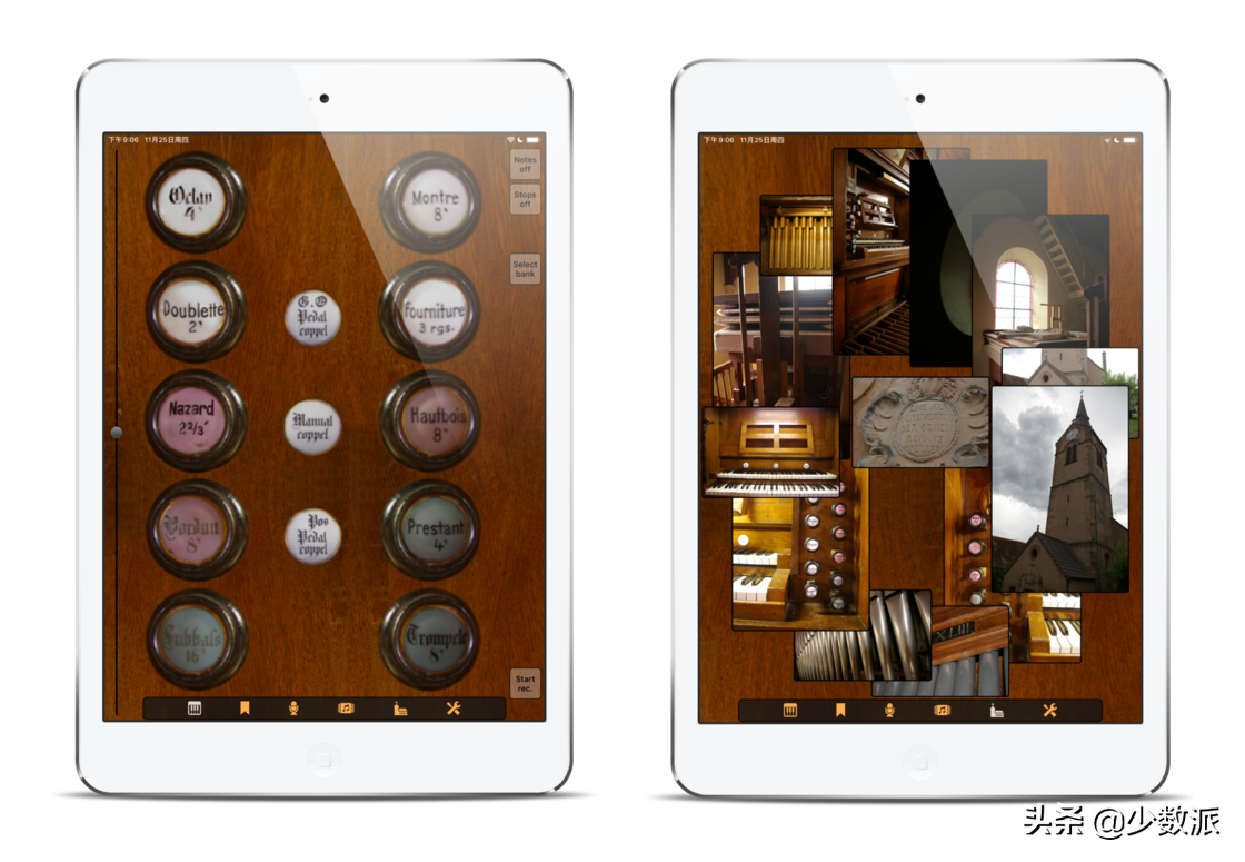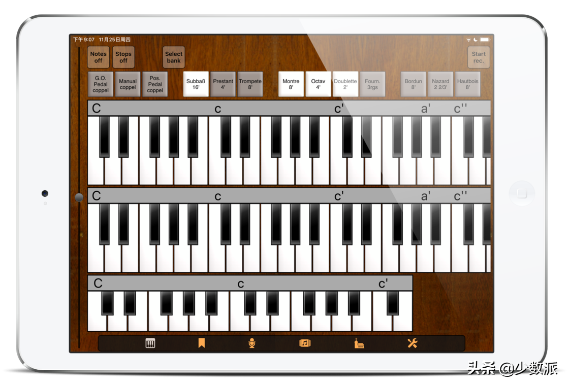 虽然 App 本身看起来虽然很古旧,但是它的功能真的很强大——它能够模拟一架管风琴的所有音管开/关状态的组合,音色非常纯净真实。