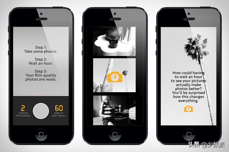 这款 App 本来叫做 1-Hour Photo,来自(有些)著名的 CameraBag 的公司,被 iOS 11 抛弃之后,最近它又得到了翻新,出现在了 App Store。这款 App 的宗旨是,让你享受当下,于是你拍摄的照片必须要等一个小时才能看。拍摄照片一小时之后会有通知提醒你的照片已经准备好了。
