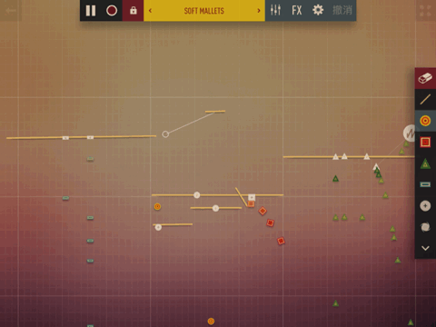 版本 1.0 时间:8 年前最后一次更新时间:3 年前(适配 iPhone X 屏幕)和之前的 Rockmate 一样,这款 App 也是出自开发者 Finger Lab 的款音乐制作 App。这款 App 的界面是一张大的画布,你可以在其中摆放各类物件和墙壁。其中的发声物件会受到重力影响而下坠,并和其他物件发生碰撞,发出事先采样的乐器声。当然,由于这款 App 本身是由物理引擎驱动的,你也可以用它制作带有随机性的,类似氛围音乐的小曲。