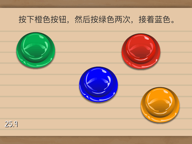 简单来说,在「笨蛋测试」中,你需要在游戏的指引下完成一些简单的任务,比如上面这个按按钮的题目。当你按下第一个按钮时,上面的题目会消失。你硬着头皮准备凭记忆连续两次按绿色的按钮,可是按下第一次后这些按钮换了位置,于是你按错了。