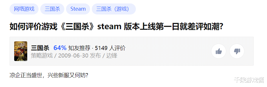 如今过去将近一个月,《新杀》在steam的评价仍是差评如潮,被无数玩家嗤之以鼻。
