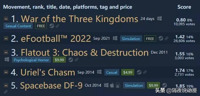 去年12月17日在steam上线的《三国杀》在短短四天的时间里就获得了上千条的差评,以超91%的差评率位居“steam评价最差游戏top100”的榜首。