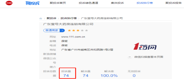 据中国网财经记者不完全统计,今年春节以来,仅聚投诉和黑猫投诉两家平台上关于“1药网”的投诉数量就超过了200个。