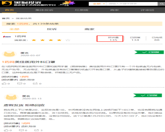 “1药网”遭消费者集中投诉“利用口罩虚假宣传”、“囤积居奇”