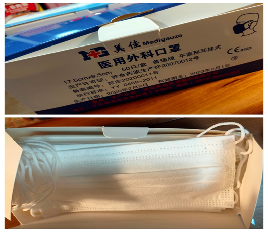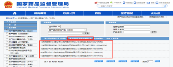 值得注意的是,记者在国家药品监督管理局上搜索海安美佳公司,查询结果显示,海安美佳公司有医疗器械注册号的产品分别为“医用腹部巾”、“医用纱布片”、“医用纱布球”、“医用脱脂棉纱布”,上述4种产品的生产许可证号均为“苏食药监械生产许20070012号”。然而,上述获生产许可证的产品却不包括口罩。