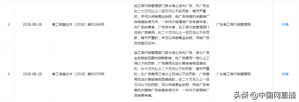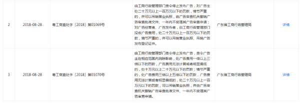 2018年8月期间,广东壹号大药房因违反广告管理行为被广东省工商行政管理局接连处罚2次。