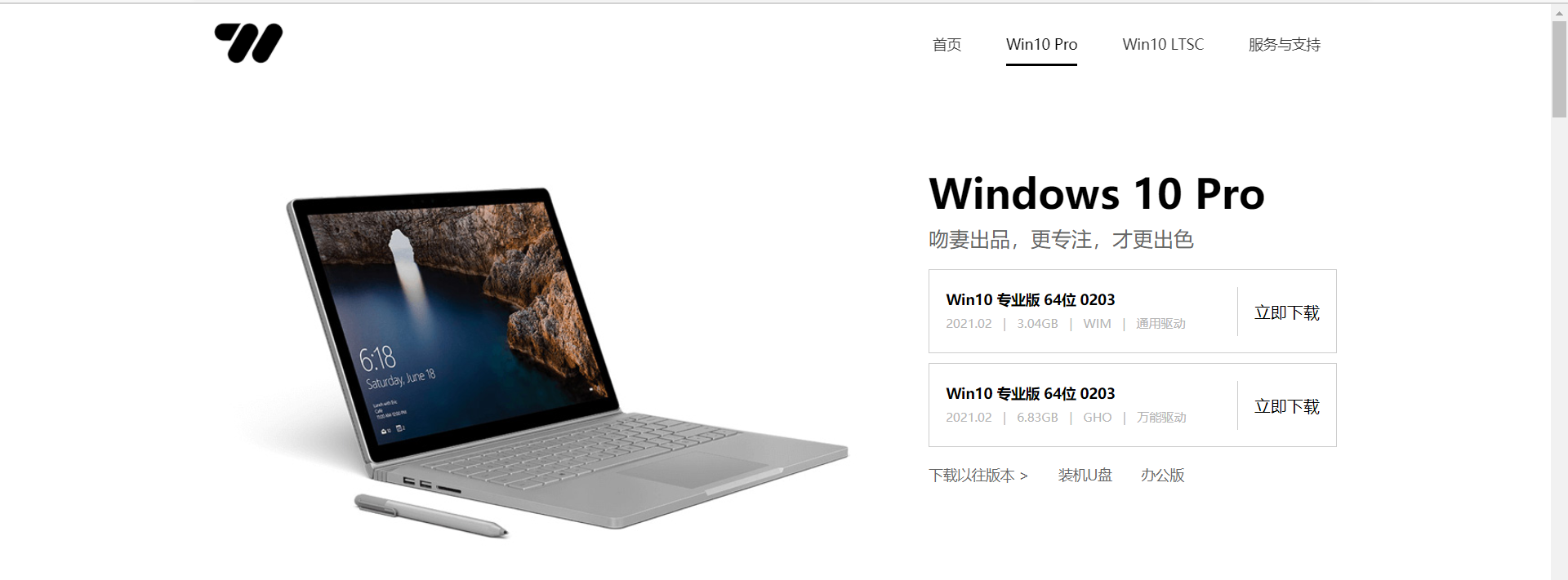 该网站主要提供了两个大的window10版本,一个是window10 pro(我们俗称的win10专业版),另外一个是windows10 ltsc(我们俗称的企业版,也叫老坛酸菜版本)。