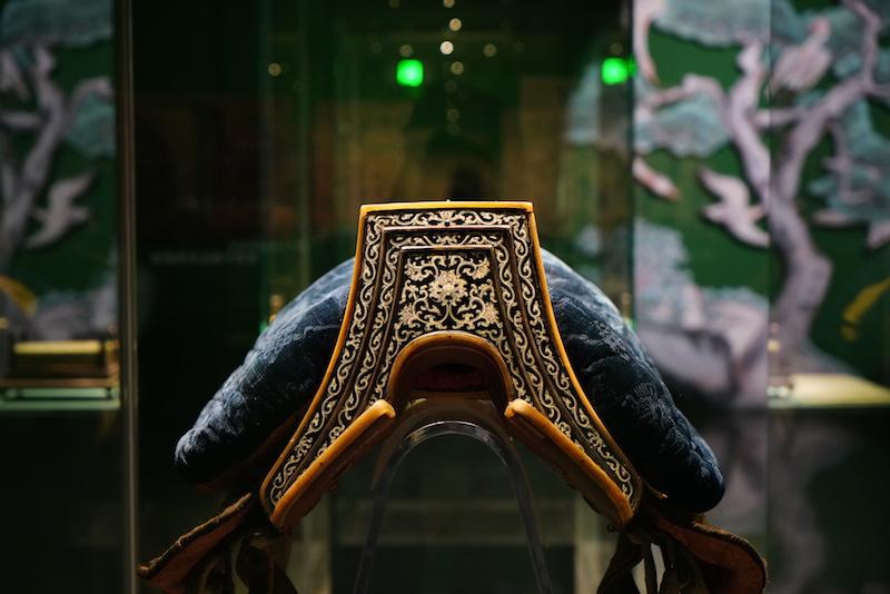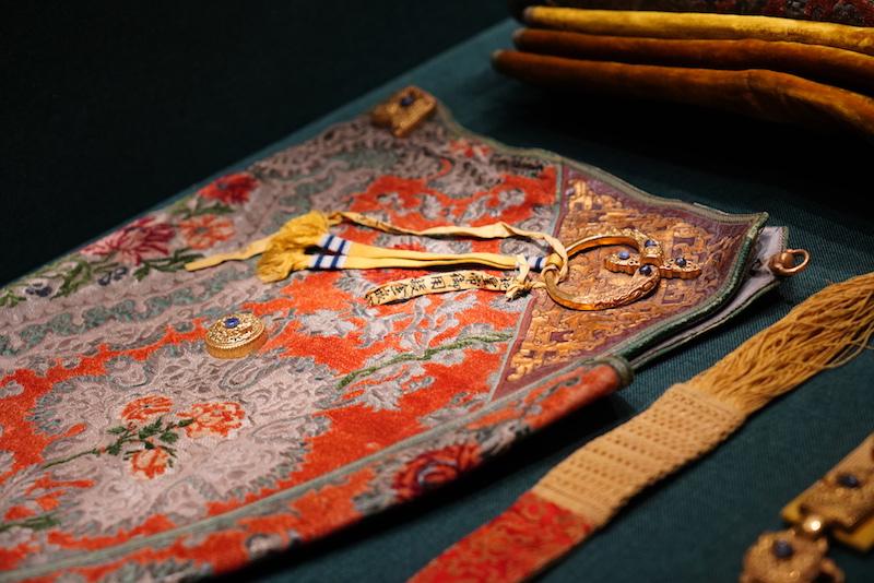 展厅现场,清代金银丝花纹缎櫜鞬
