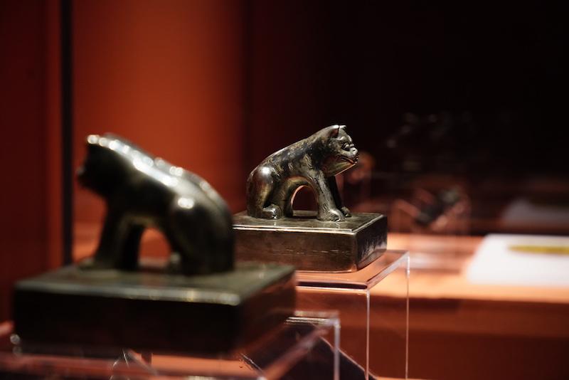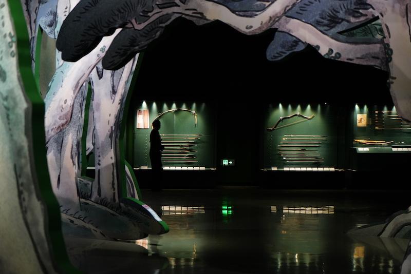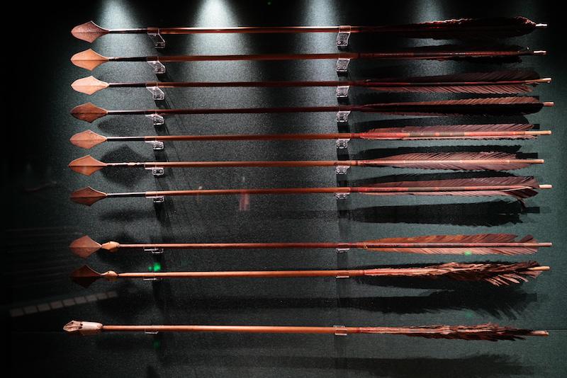 此次展览从故宫收藏的近一万支箭中,甄选三十余支,包括了射熊、射虎、射狼、射鹿、射兔、射鸭、射鱼等箭,观众可以近距离地观看每种箭支的差别,感受满族人对于狩猎的细致和重视。