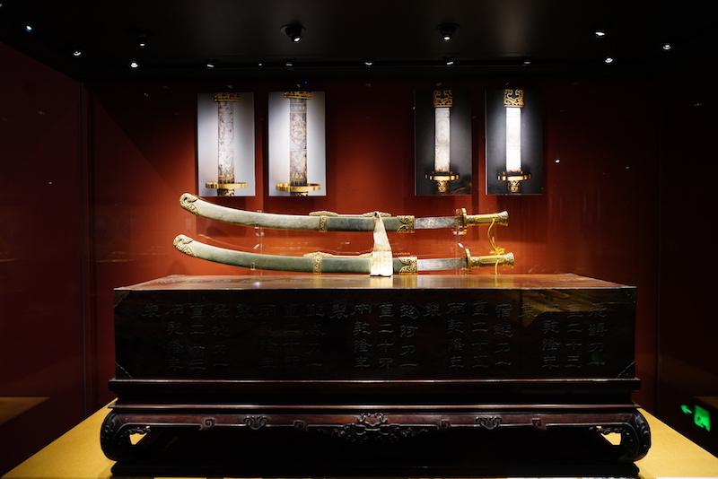 展览现场,乾隆皇帝“天地人”刀剑