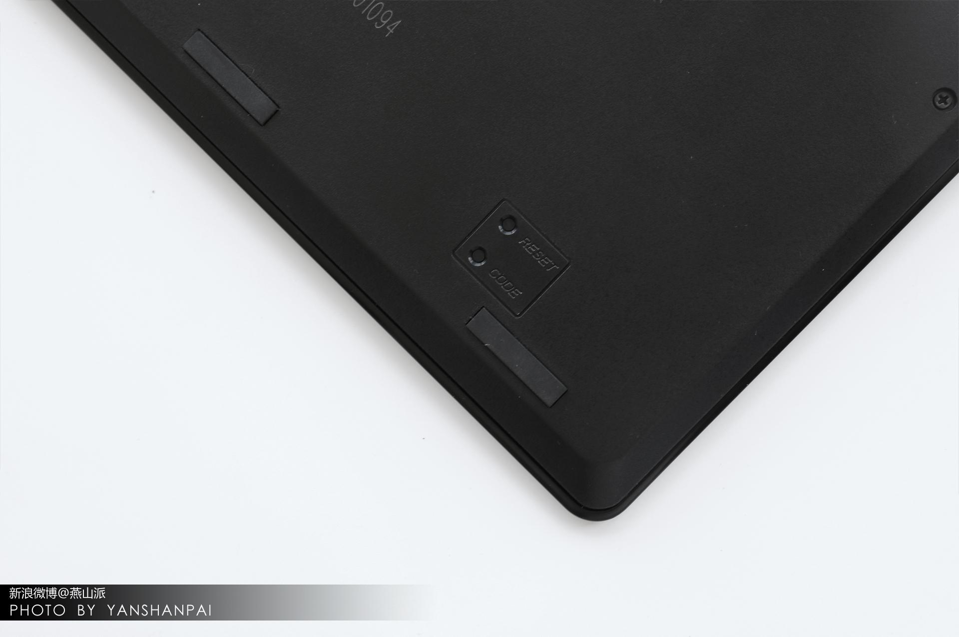 机身背部边角均设计有防滑胶垫,右上角设计充电模块接口。