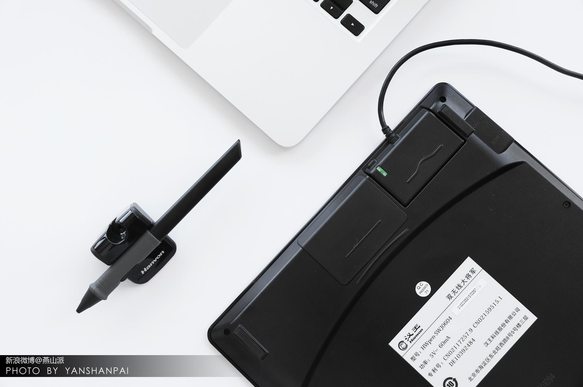 值得一提的是,充电模块除了充电之外,还是汉王双无线大将军plus的信号接收端,两者连接时可以在充电的同时通过数据线进行信号传输,当将充电模块从手写板拔下时,其则成为手写板与电脑之间的无线信号中转站。