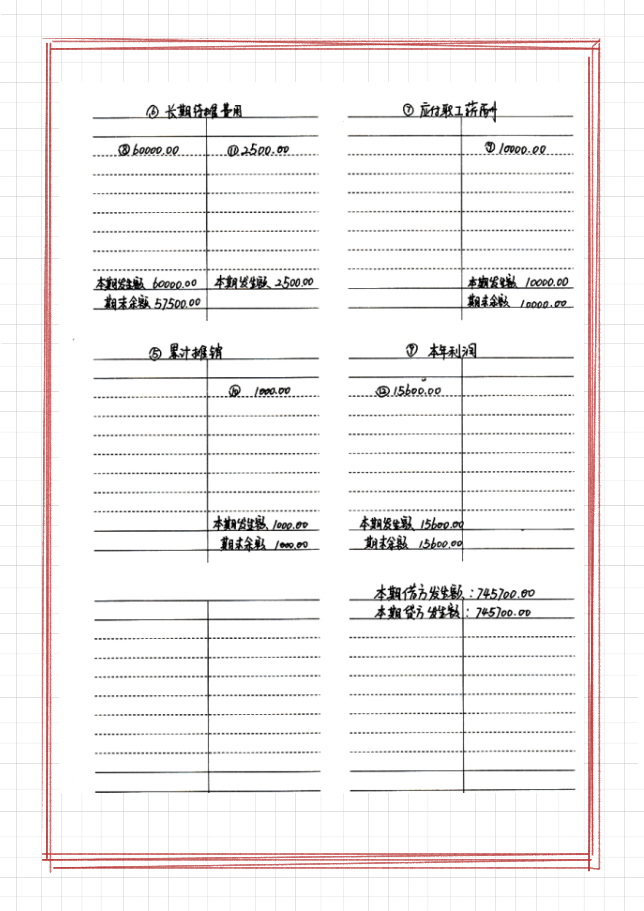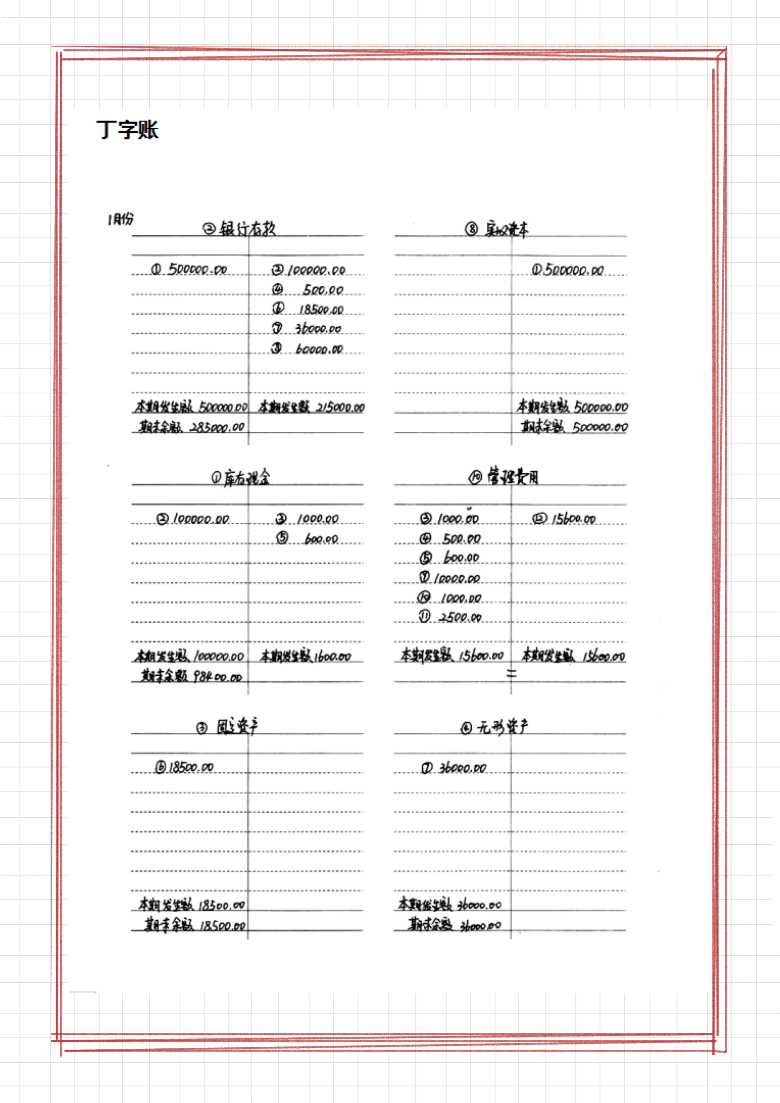 2、丁字账的填制模板