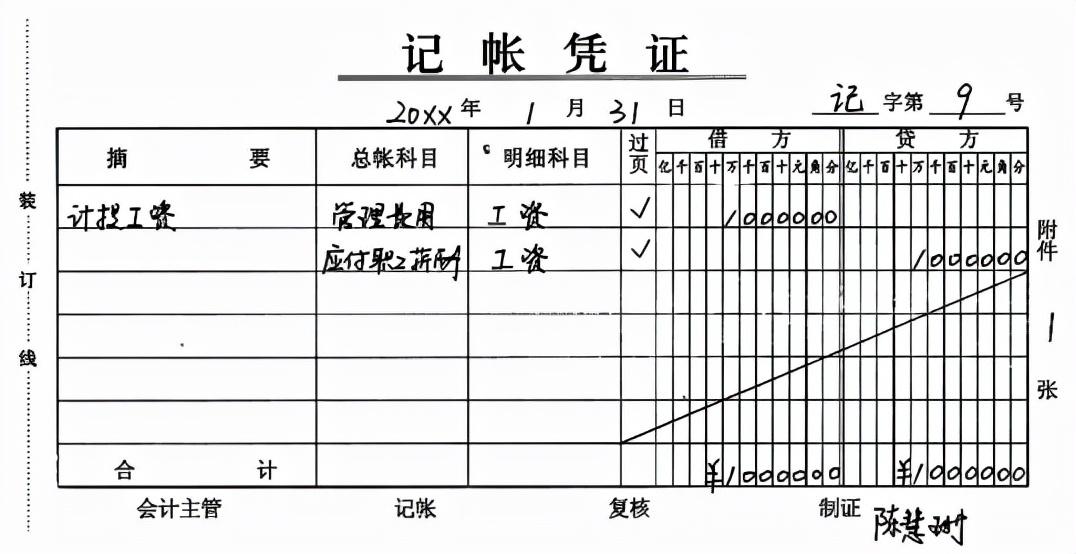 (4)计提工资的记账凭证