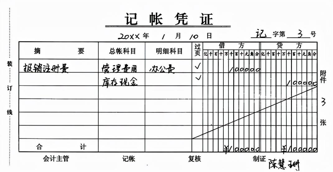 (2)报销注册费的记账凭证