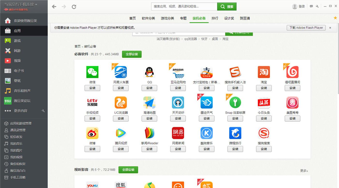 最后,我面再看看豌豆荚上没有包括哪些APP: