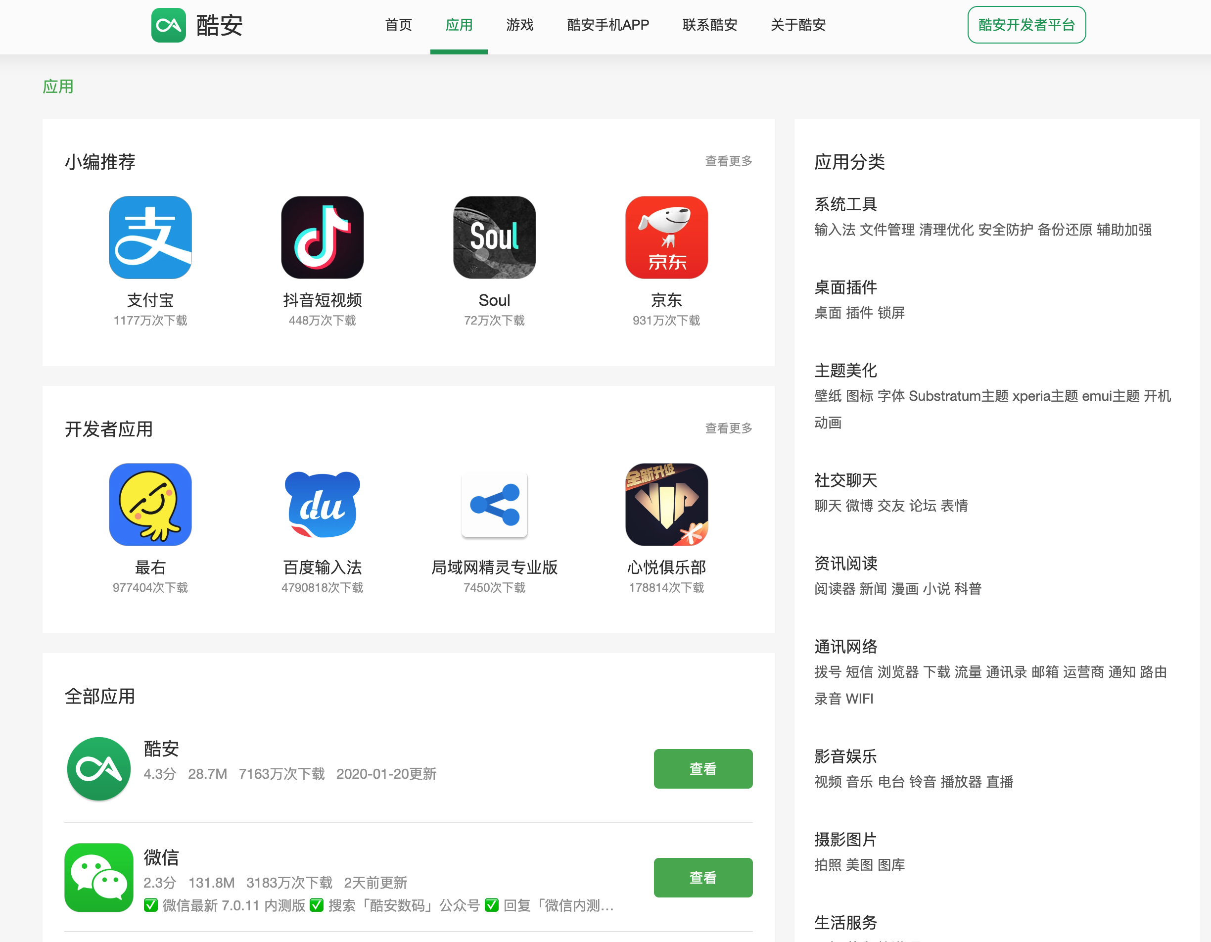 相信很多人都在使用豌豆荚下载 App,我则使用酷安较多,所以也想比较一下这两个网站的 App 特点。