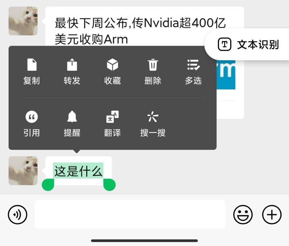 微信目前上线了指尖搜索,可以在微信聊天对话框中快捷使用搜一搜功能,并且还支持进一步搜索大爆炸分词显示、搜索。