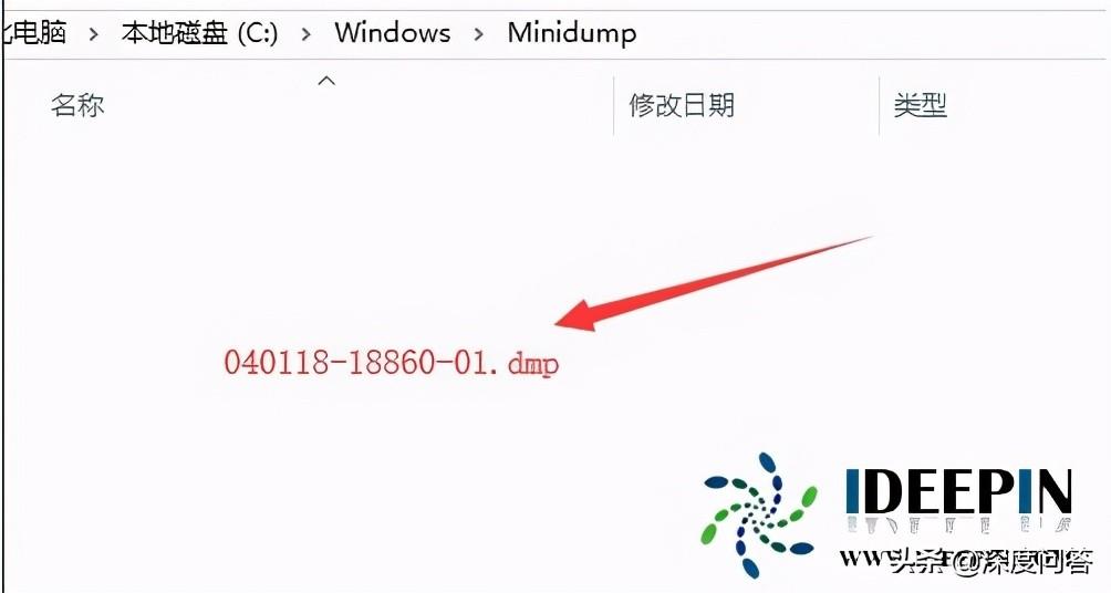 6.在minidimp文件夹中找到040118-18860-01.dmp文件删除即可。
