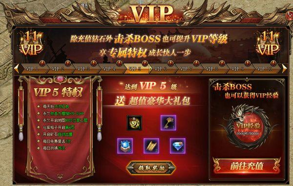 【VIP也靠打,享专属特权】 谁说VIP一定要充值升级?《传奇国度》反其道而行,VIP系统可以通过击杀BOSS升级,击杀BOSS越多VIP等级提升越快,超多特权免费送,海量豪礼送不停,以往的游戏的假送VIP不存在的。打怪升级VIP两不误,享专属特权成长快人一步!还有大量福利好礼开服相送,拿礼物拿到手软!