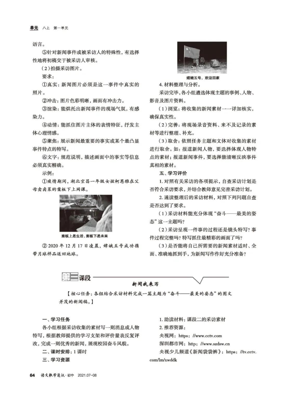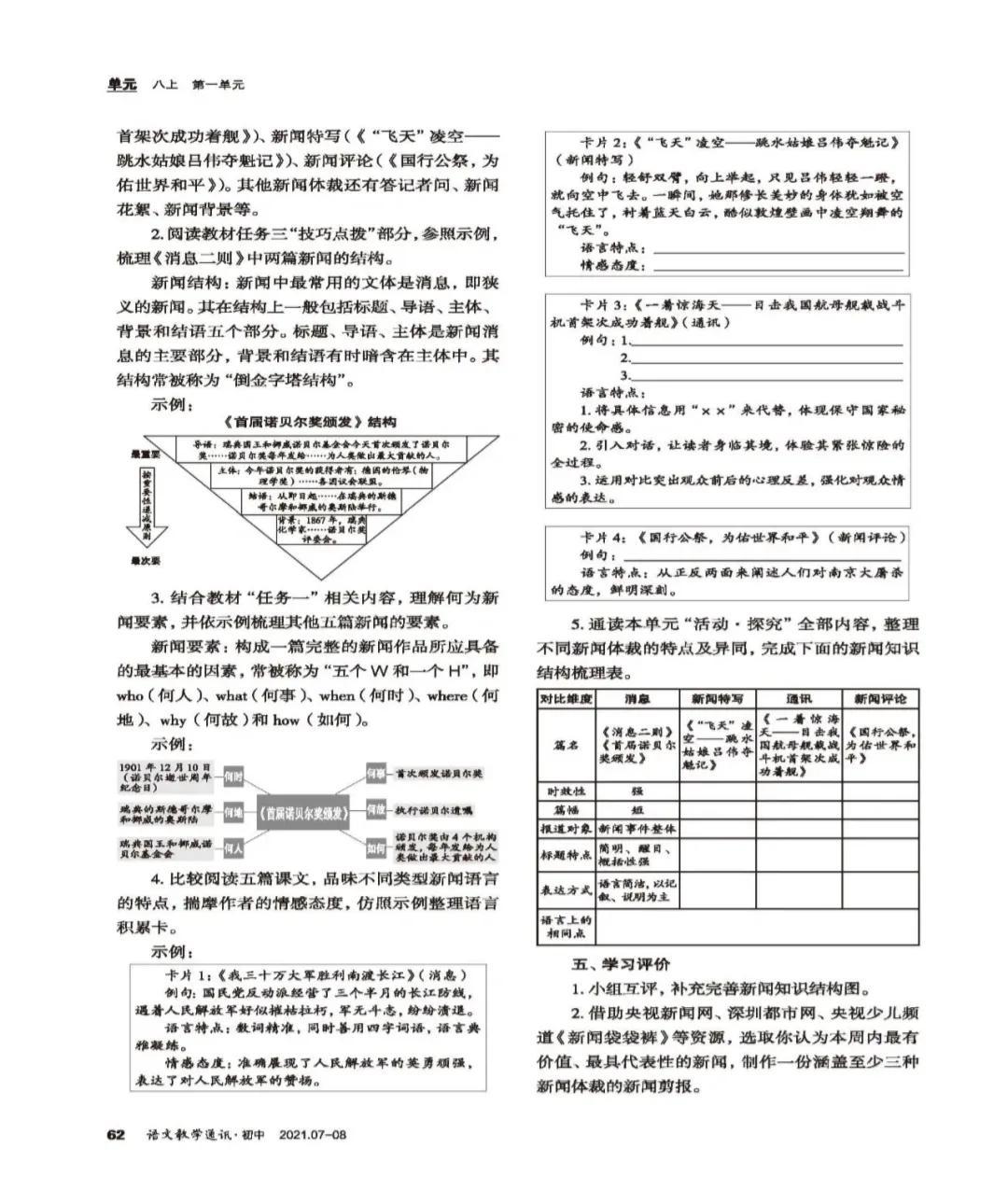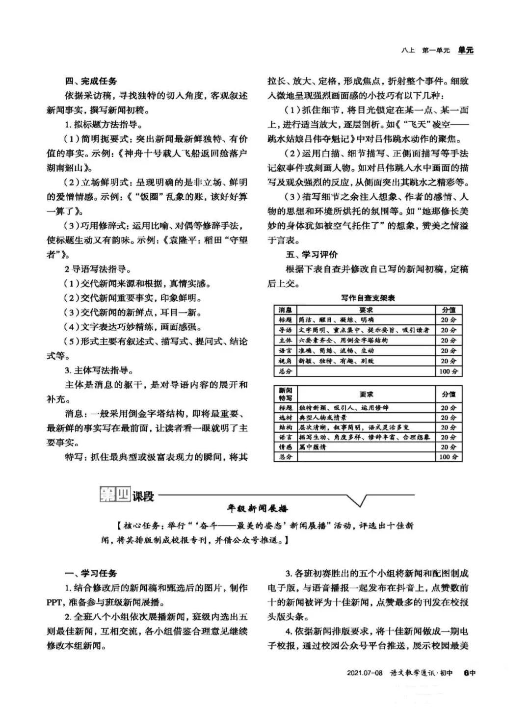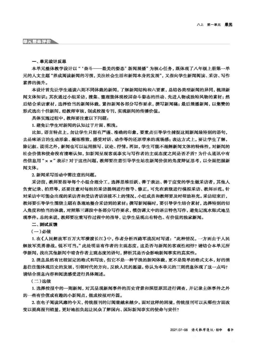 统编教材八年级上册新闻单元整体教学设计