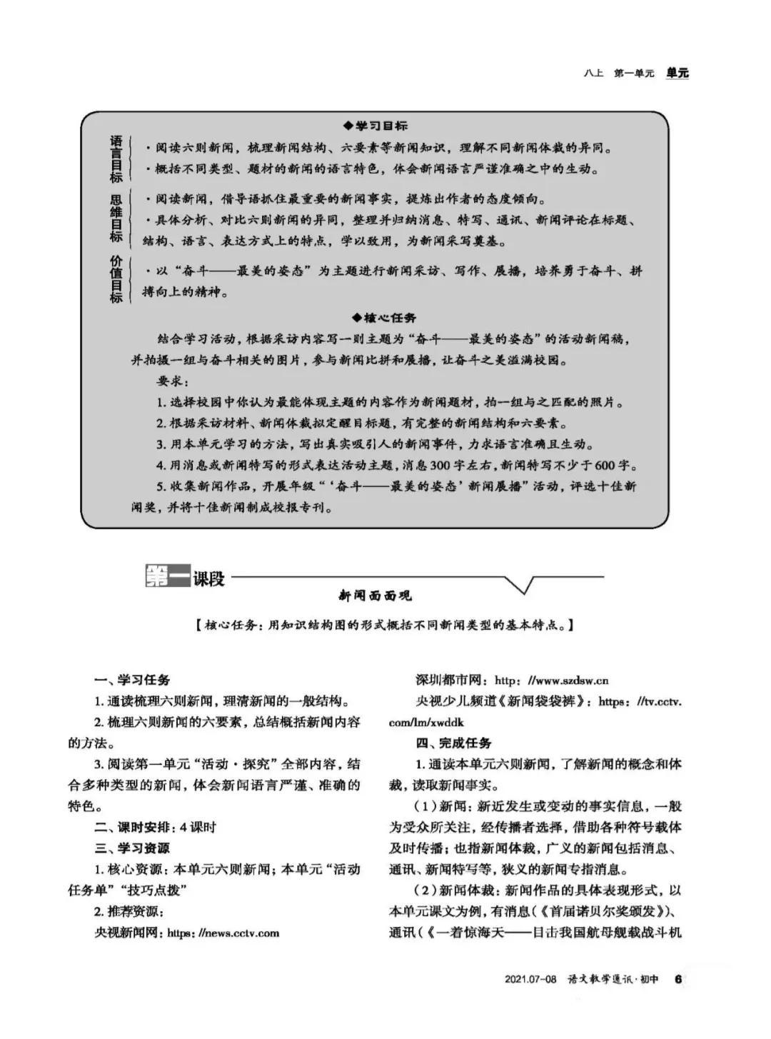 一、结合教材,了解新闻阅读的目标与方法