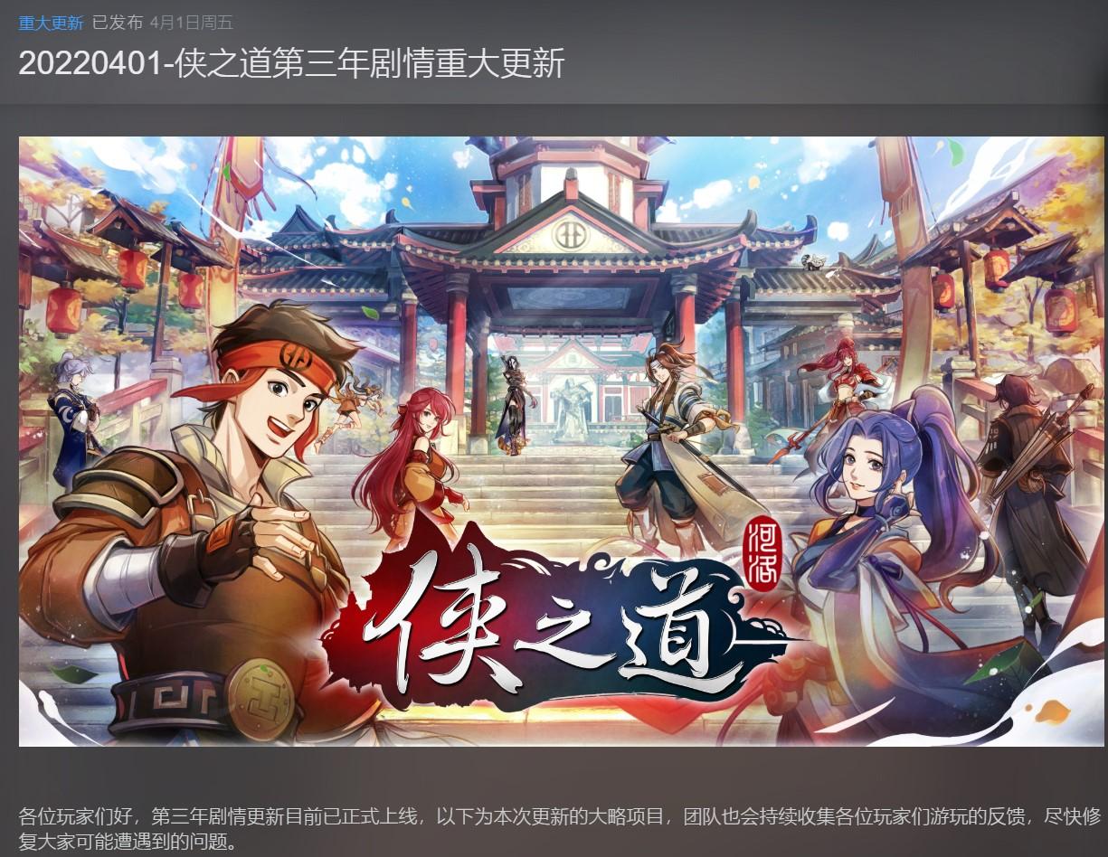 2022年4月1日,《侠之道》迎来了第三年的更新。