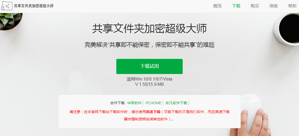 步骤一: 在共享文件夹加密超级大师官方下载页面,下载软件安装包。