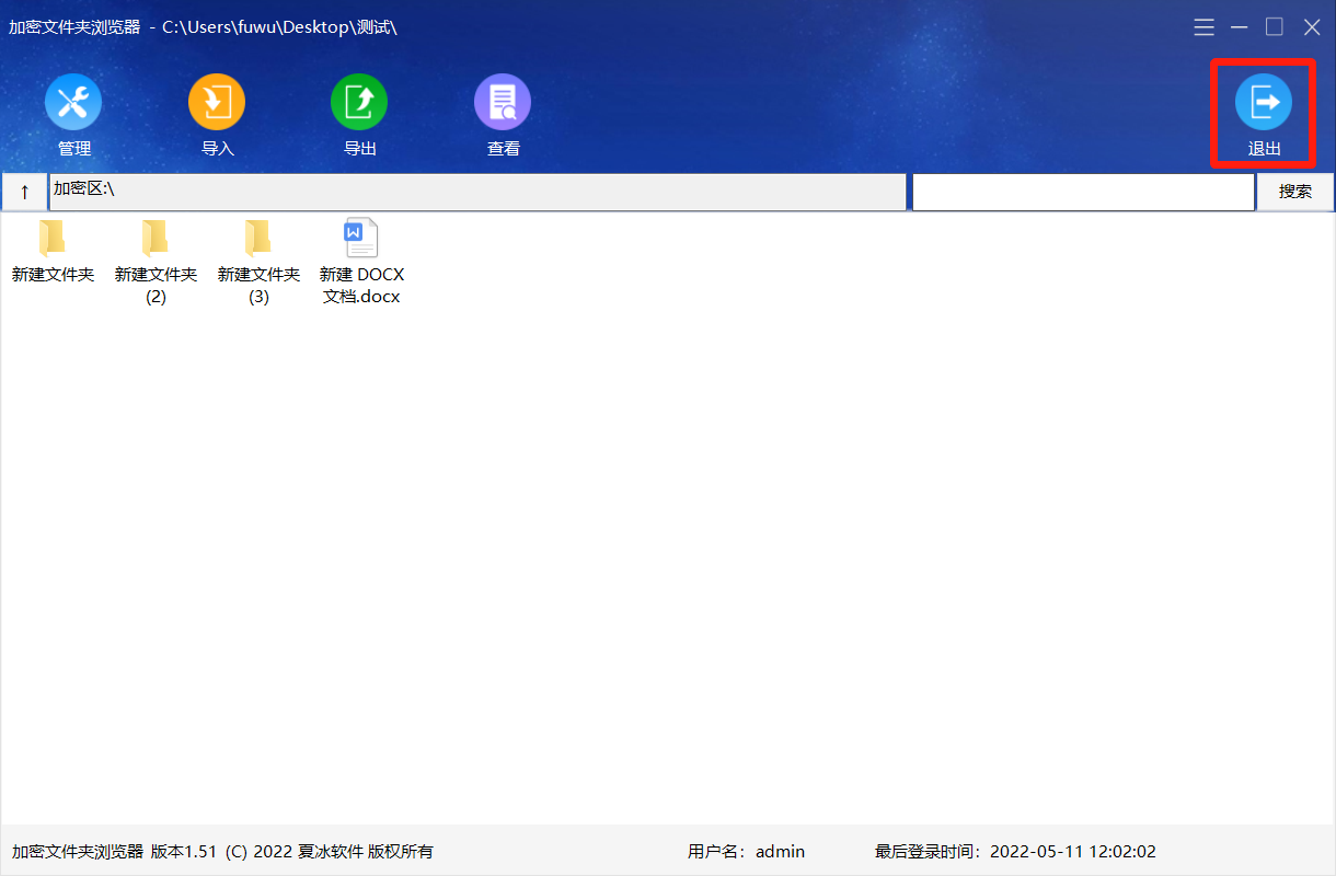 使用方法:进入客户端,在加密文件夹浏览器窗口的右下角,会显示登录的用户名,和该用户名上一次的登录时间。