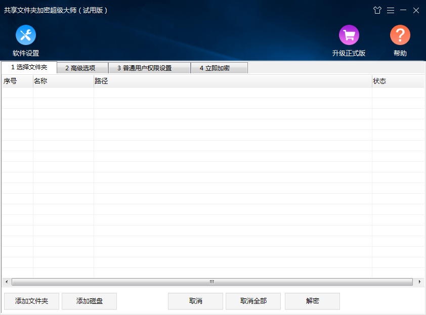 取消全部:如果文件夹/磁盘列表中的所有文件夹或磁盘都不需要加密,直接点击”取消全部。