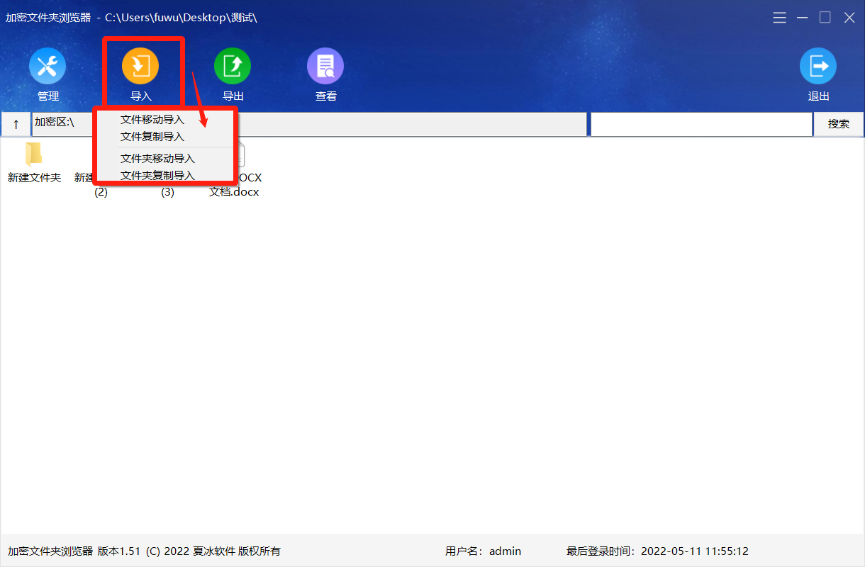 功能说明:将其他位置的文件或文件夹剪切或复制到加密文件夹中。