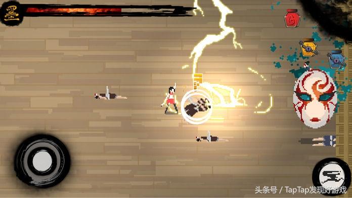 墨术是一款国产像素风的独立游戏,在这款游戏中玩家将扮演主角一路斩妖除魔,封印远古四凶。游戏操作简单,上手并不难,屏幕只有操控人物的摇杆和一个冲刺按键,滑动屏幕攻击,点击上方三个墨瓶可切换人物的属性,分别为火、雷、冰三种,每一个属性都有着强大的威力。妖怪横行,拯救苍生的责任就掌握在你手中了。