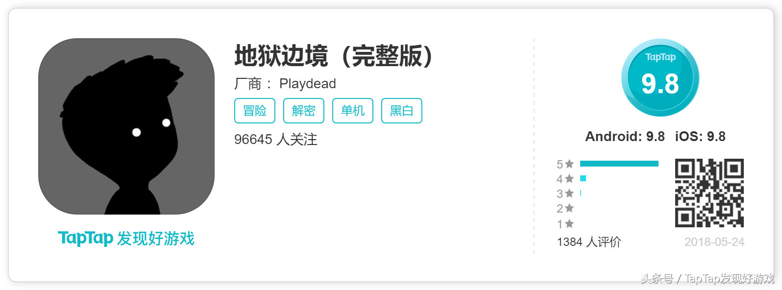 地狱边境是一款黑白画风的冒险游戏,整个游戏全都是以黑白的风格呈现的,这也正是这游戏的独特之处,玩家将扮演一个弱小的小男孩,为了寻找自己的妹妹,踏上了这个未知的旅程,游戏操作并不困难,左右滑动控制人物行走,向上滑动跳跃,长按移动物品。玩家不仅要巧妙运用场景中的任何东西,还需要注意一些水深的区域,或散布在地上的夹子,这个弱小的男孩随时都有可能被这些危险东西要了命。游戏画风虽然比较压抑,但游戏内容却非常有趣,值得一试。前进!我相信这些困难不能把你怎样。