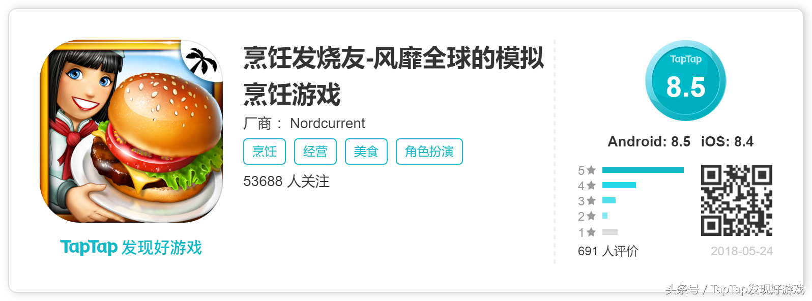 很多人估计有一个梦想,那就是经营一家属于自己的餐厅,如果真是那样,那么你真该试试这款游戏,就像名字一样,这是一款曾风靡全球的模拟经营类游戏,在游戏中你将经营一家餐厅,通过满足顾客来赚取相应的费用,你可以利用你赚来的钱来装饰餐厅,升级厨具等等,当你在一家餐厅达到一定程度的时候会解锁另一家餐厅,餐厅种类很多,如汉堡店,寿司店,海鲜店等等,所以不用担心你会玩腻,看似简单的游戏,玩起来却要有些难度,你需要集中注意,总不能点个汉堡给顾客可乐对吧,游戏有很多需要注意的地方,肉饼放在锅上久了就会烧焦,到时候你就必须把它扔掉,这会浪费很多的时间,如果你浪费了过多的时间顾客就会气的走掉,当然越快赚的钱就越多,分数也会越高。加油吧!顾客可不会因为你的懒惰等你一整天。