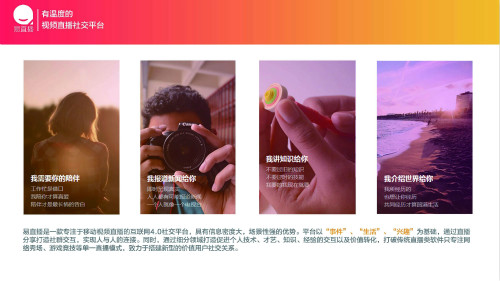 面对直播产品的“红海”热潮,尤其是层出不穷的秀场类直播产品,易直播创始人陈建文始终认为判断一个产品,一个项目,无论在中关村还是在硅谷能否长久立足,有没有潜力成为好的产品,重点都在于这个产品是否能够创造持续的价值。如果说微信带来了信息大爆炸和时间碎片化,视频社交解决的则是专注于沉浸感的深度社交体验。在解决了信息的广度和效率之后,下一个亟待发展是信息的深度。视频直播是最容易的视频产生平台,大大降低了视频产生的门槛。