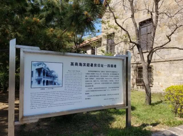 四眼楼坐落在威海环海路7号。此处原为英国强租威海卫时期英海军司令的避暑别墅,现已收归我海军所有。顶楼上方有四个圆孔,犹如四只眼睛,日夜望着大海,故威海人称其为“四眼楼”