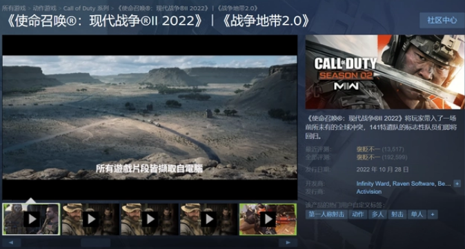 与此同时,在本月早些的时候,战区2.0也正式上线,全新的游戏引擎、游戏内容可更大的对战场景,再配合实名召唤19,让整个使命召唤的热度再创新高。
