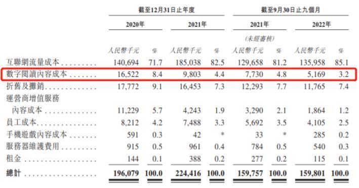 报告期内,宜搜科技数字阅读内容成本分别为1652.2万元、980.3万元、773万元和516.9万元,成本占比从8.4%降至3.2%。该部分成本即用户在阅读供应商提供的网络文学内容后,公司根据分成模式与阅读内容供应商共享该部分收入,相当于仅“搬运”第三方作品。