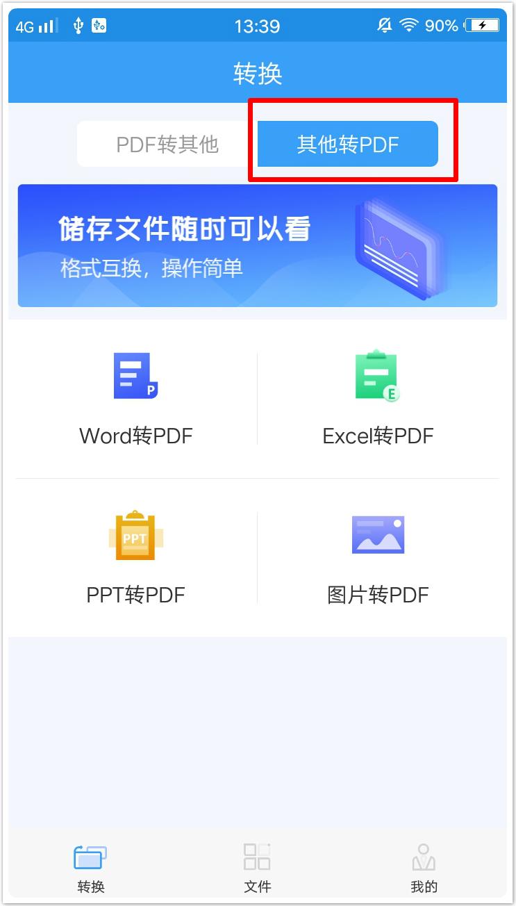 当我们在手机上打开软件以后,我们就可以点击【其他转PDF】,接着就可以根据自己的需要选择转换的原始格式文件。