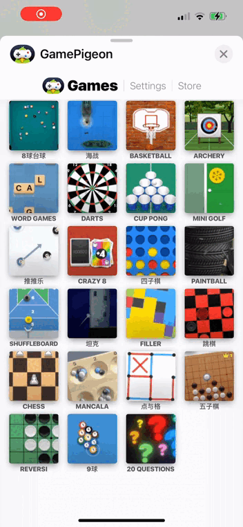 如果体验之后感受到了 iMessage 游戏的快乐,也可以去尝试一些更复杂、更华丽的游戏。比如这款 GamePigeon ,就集合了包括台球、射击、坦克、跳棋、海战等多达 23 款游戏。