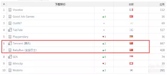 公司方面,日韩和欧美厂商主导了Google Play,最大亮点是在早教细分市场耕耘多年的宝宝巴士 ,他们堪称此品类的领头军。