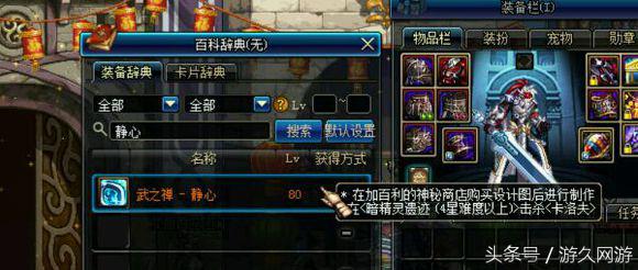 这个是新出的活动副本,四星以上有几率碰到卡洛夫,然后很大几率掉落武之禅系列首饰