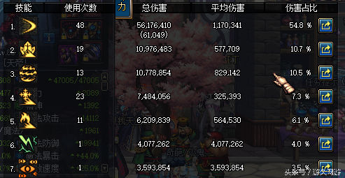 贴张伤害图,可以发现骨龙的防御相当的高,楼主整整打了10分钟,所以大家要有耐心