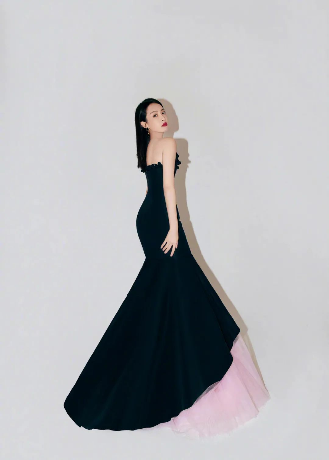 亮银色的晶片粉饰在薄纱和羽毛的交壤处,给这条裙子增加了很多仙气。这些美妙的元素着实太悦目了,也太知足少女心,李冰冰穿上后显嫩很多。加上细腻的背头发型,李冰冰全部人显得既精力又柔媚。